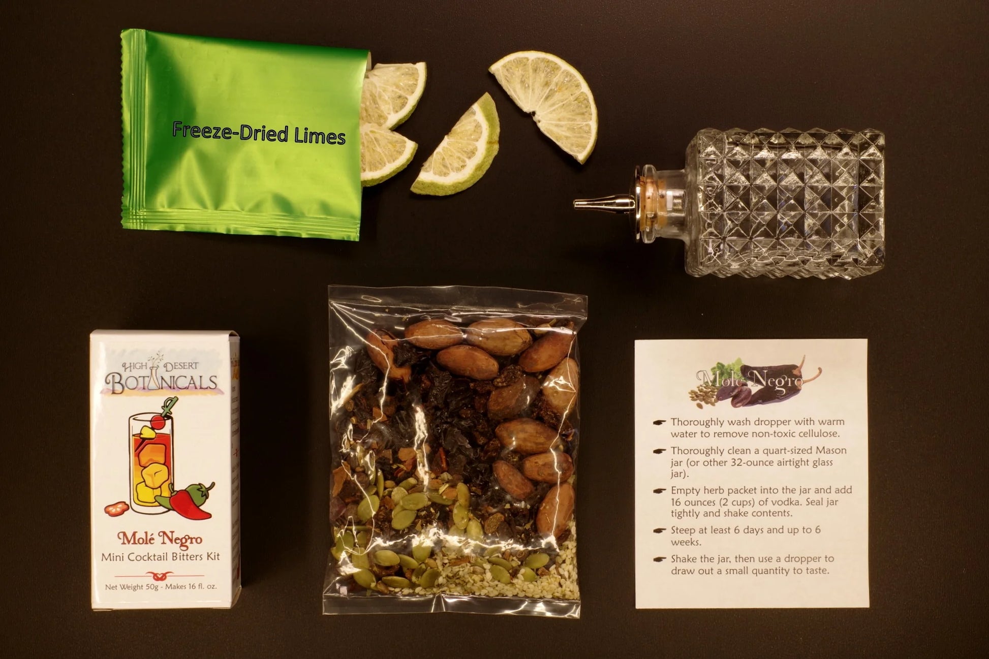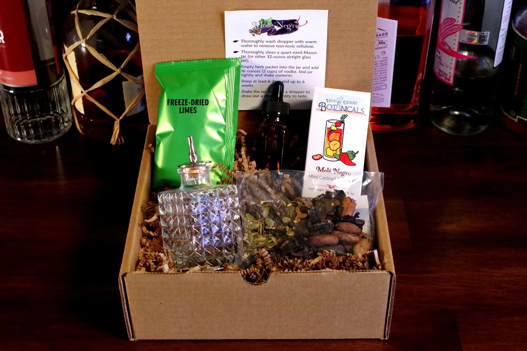 Try something new each month with a box of cocktail goodies from High Desert Botanicals. Each box includes the ingredients and instructions to make one cocktail mixer, a glassware item for storing or serving your mixer, and a garnish or tool such as salt or sugar rims, freeze-dried fruit slices, a channel knife, or garnish picks. Each month is unique.